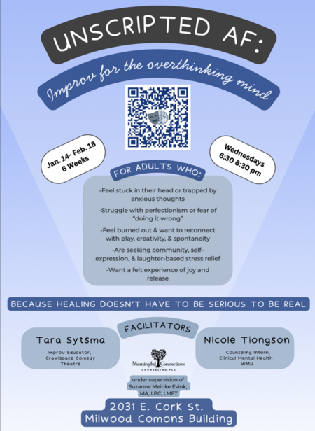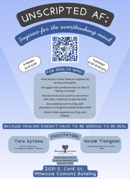 Scan the QR code for more information, or go to sites.google.com/view/unscriptedaf/home!